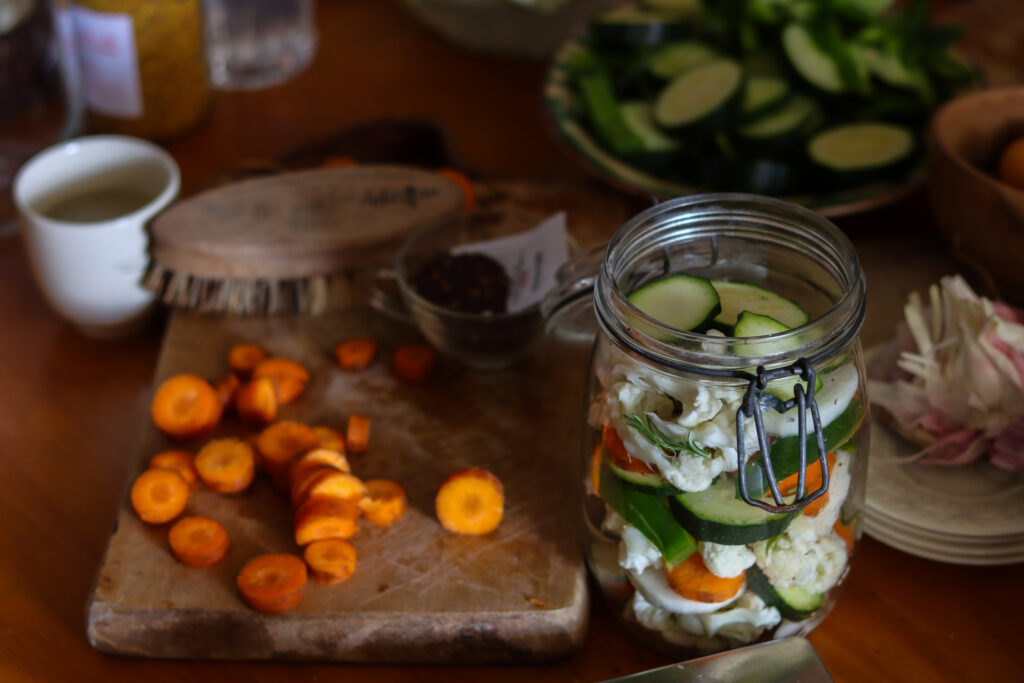 - Fabrication de pots de légumes lacto fermentés. La lactofermentation permet de conserver les aliments de manière naturelle, sans faire intervenir d’additifs chimiques et sans avoir besoin de stériliser ou de cuire les aliments. Elle peut être utilisée pour la conservation des légumes du potager. C’est simple, et ça ne nécessite pas de matériel spécifique. Un exemple de recette ICI.