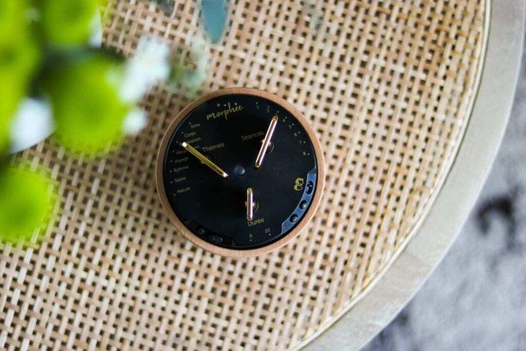 Le boîtier Morphée m’a appris à calmer le mental grâce à des séances audio de méditation, de respiration et de sophrologie. Un rituel doux, sans écran, qui favorise le lâcher-prise.