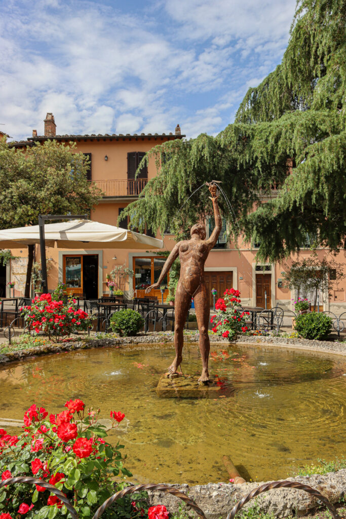 Je vous conseille de vous arrêter dans le hameau de Lucarelli, pour déjeuner ou dîner à l’Osteria Le Panzanelle. Ici on vous propose une cuisine typique traditionnelle toscane à base de produits de saison. Tout est fait maison. Si vous êtes de passage aux beaux jours vous aurez le plaisir de vous attabler dans le jardin ombragée du restaurant.