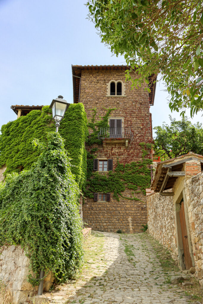 - MONTEFIORALLE qui fait partie de la localité de GREVE IN CHIANTI. C’est un tout petit village tout en pierres, avec de jolis maisons et de jolies rues toutes fleuries.