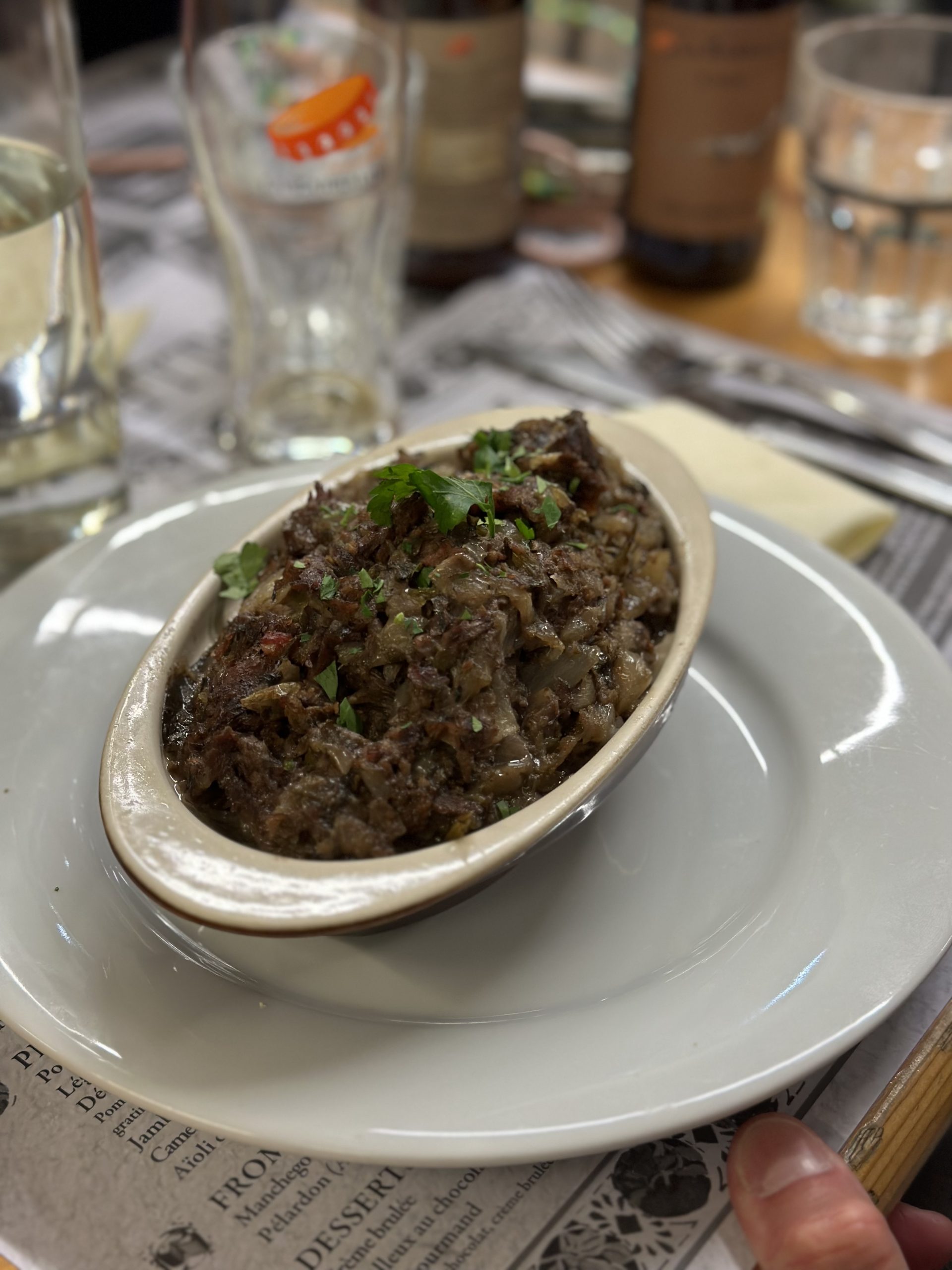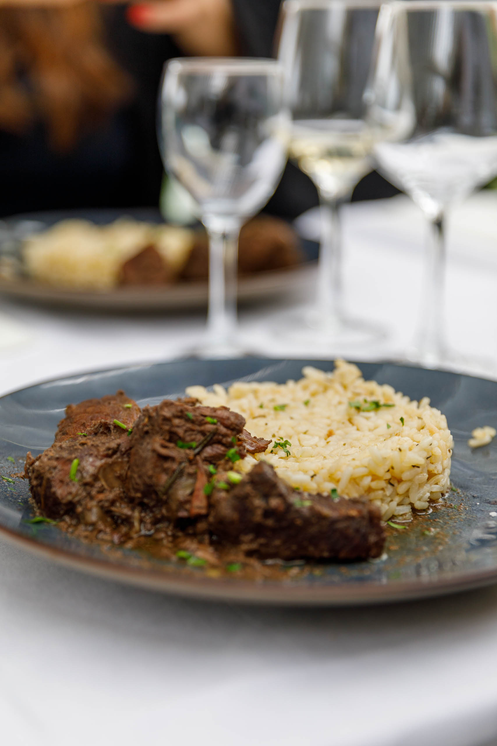 • Pour le déjeuner nous nous sommes rendus à quelques mètre de là au restaurant Le Ciel de Nîmes situé au dernier étage du Musée d’Art Contemporain de Nîmes. Au menu: Papeton d’aubergines, gardianne de Taureau (daube camarguaise) & mousse au chocolat. Des plats bien d’ici ! Le gros plus de ce restaurant ? Sa vue imprenable sur la Maison Carrée et les toits environnants.