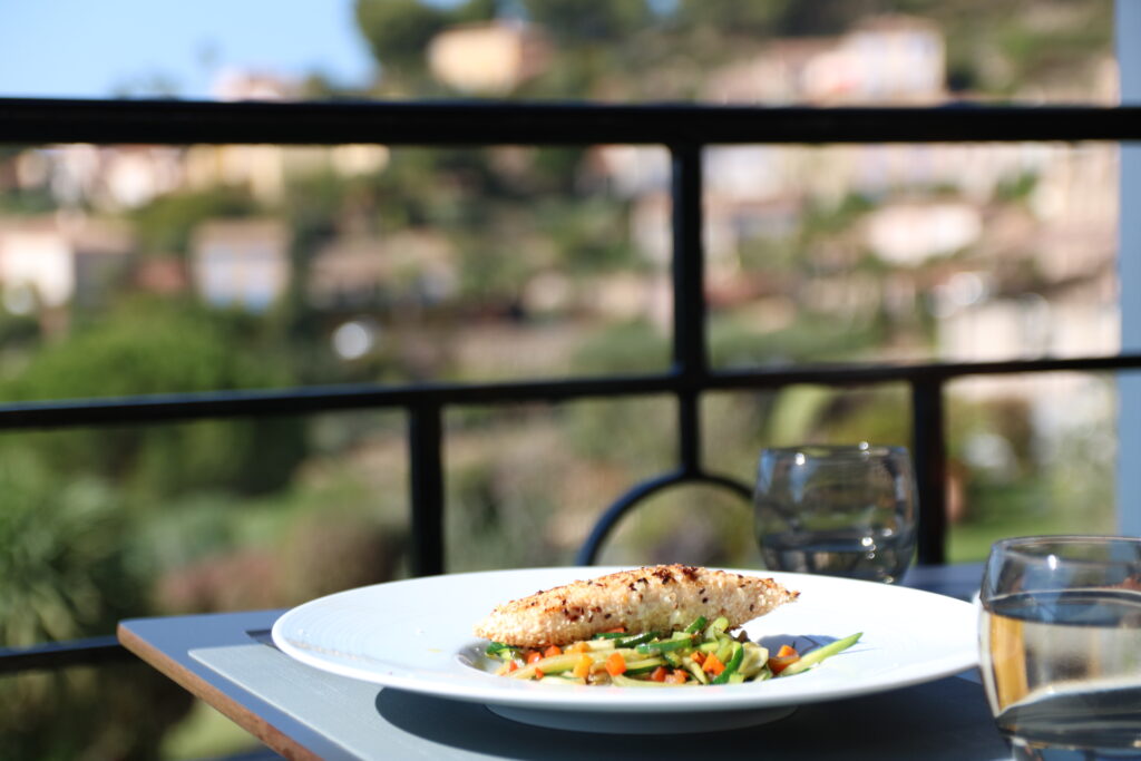 Pavé de saumon au sésame & ses spaghettis de courgettes – Bistrot La Restanque