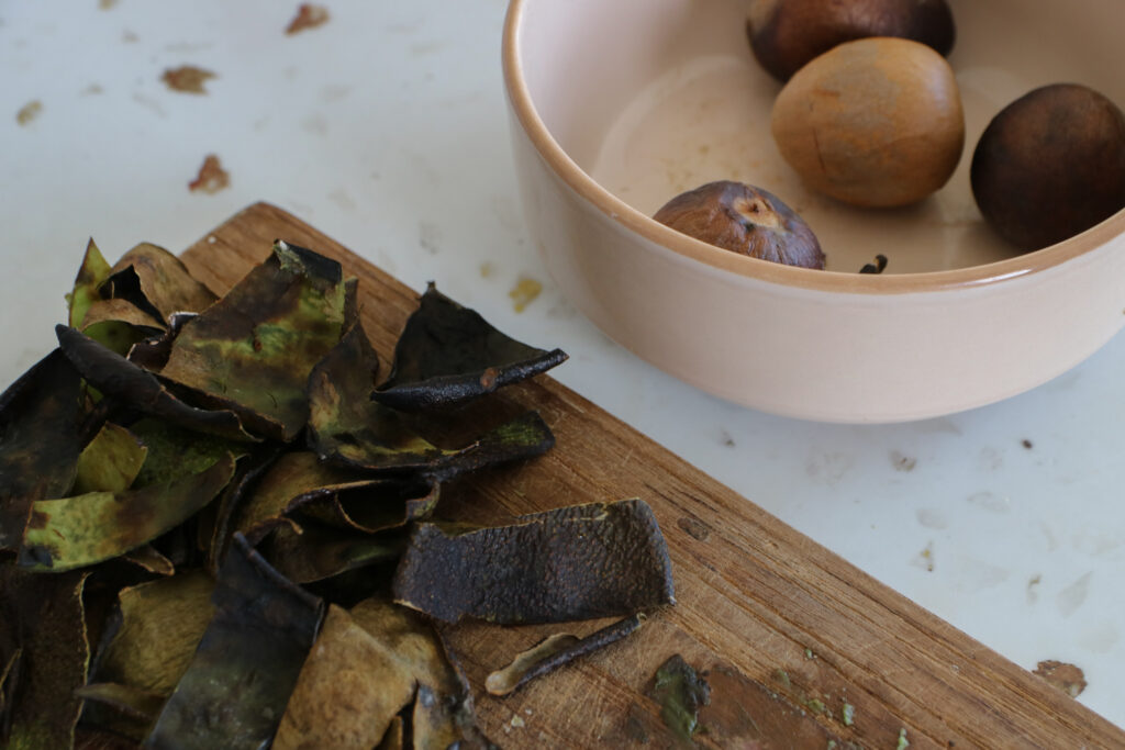 ÉTAPES DE LA TEINTURE AUX NOYAUX ET PEAUX D’AVOCATS