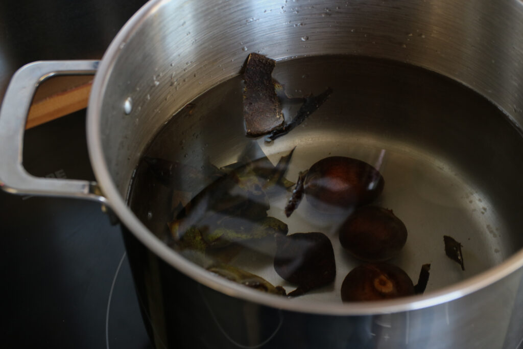 - Faites bouillir à gros bouillon les peaux et noyaux d’avocats pendant 1 heure environ