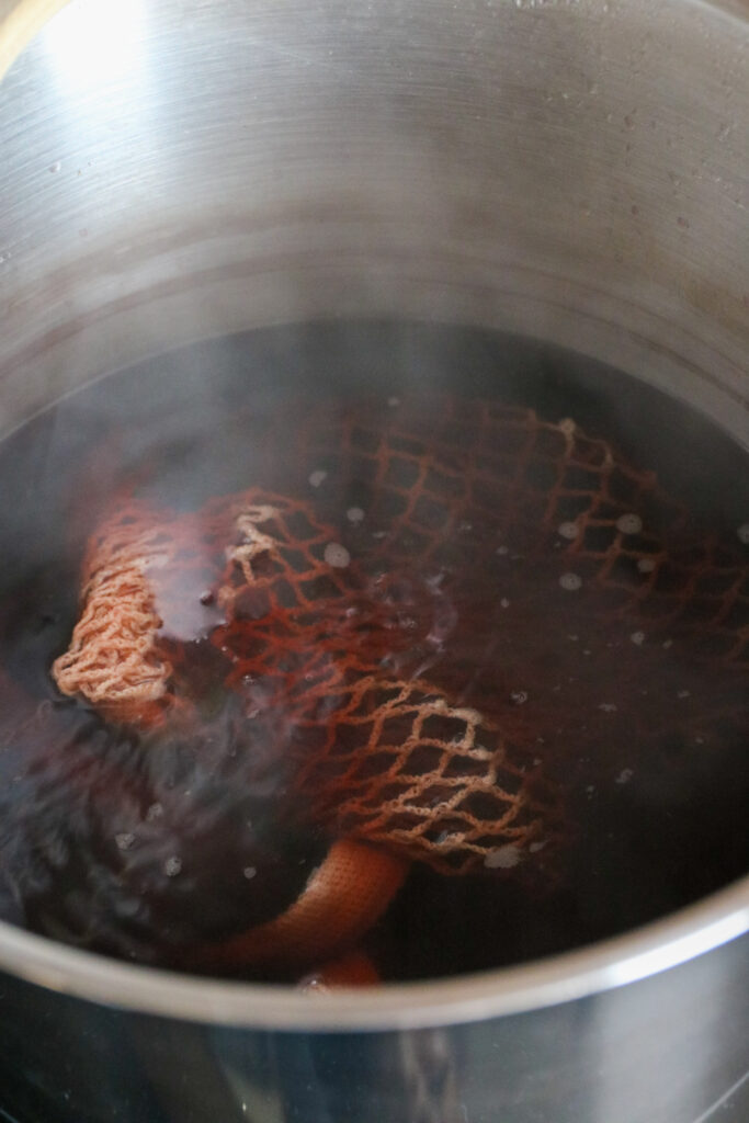 - Laissez l’eau frémir et plongez-y vos tissus de 15min à 1h selon la teinte voulue