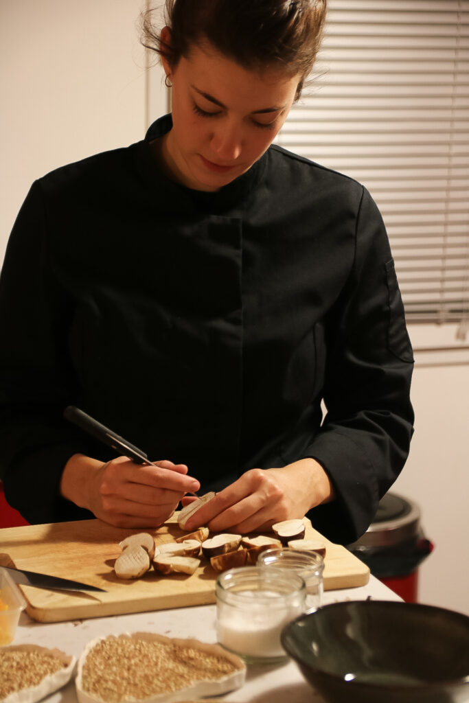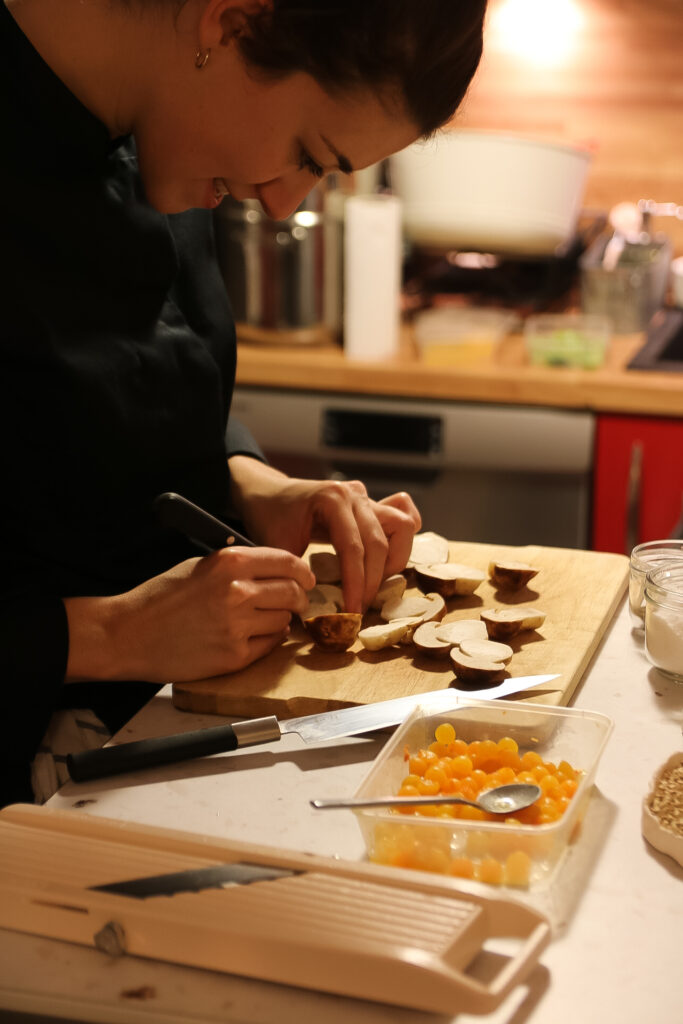 La cheffe est arrivée à 18h pour un début de repas prévu à 20 heures. C’est elle qui se charge des courses, de la préparation du repas de A à Z et elle peut également apporter la vaisselle (en fonction du nombre de convives). Pour faire simple, vous ne vous occupez de rien ! Un bonheur de se faire chouchouter chez soi.