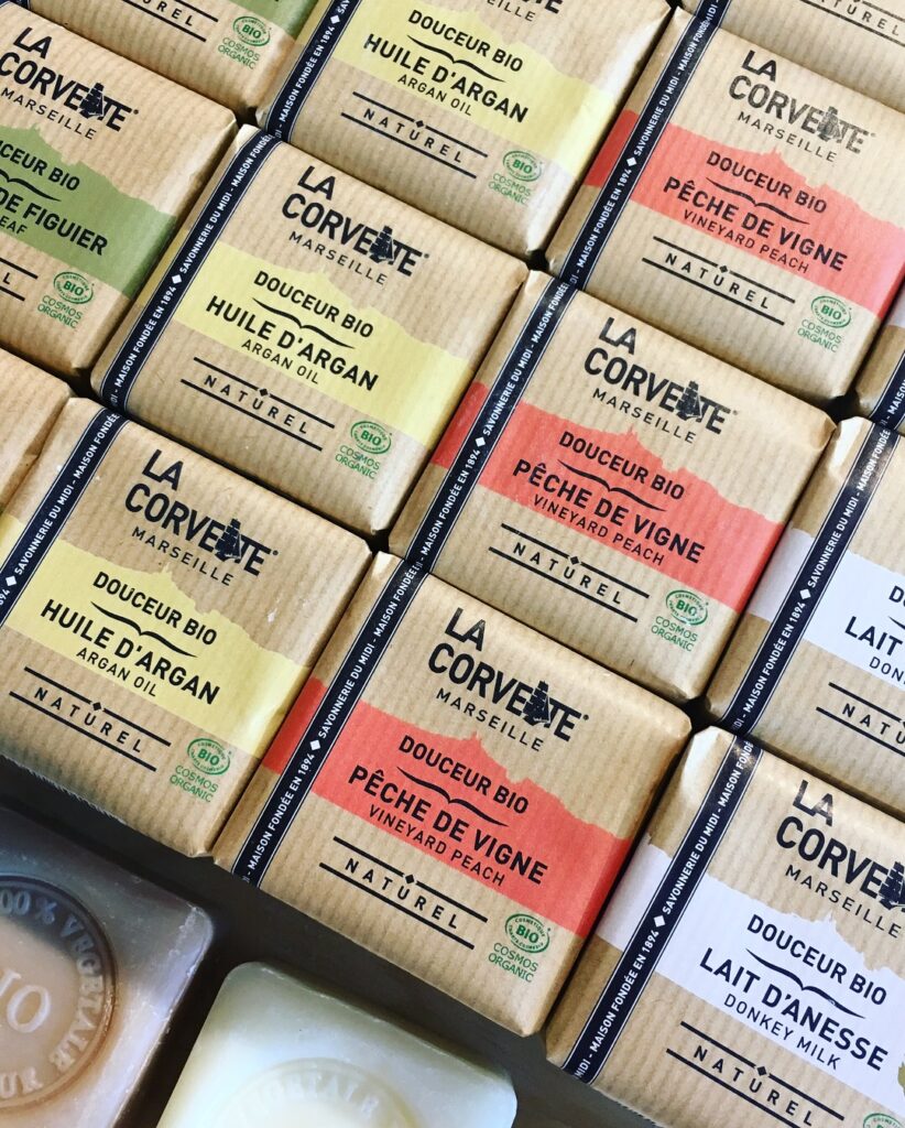 Depuis 1894 La Corvette perpétue les méthodes ancestrales de fabrication et produit les véritables savons de Marseille. Mais au fil des années, la marque a décidé de diversifier son offre en proposant le savon de Marseille sous différentes formes (liquides, savonnettes, en copeaux…). Et pour varier les plaisirs La Corvette a pensé à tout puisqu’elle vous propose également différents parfums: pêche de vigne, lavande, lait d’ânesse, olive, huile d’argan… De quoi satisfaire toutes nos envies.