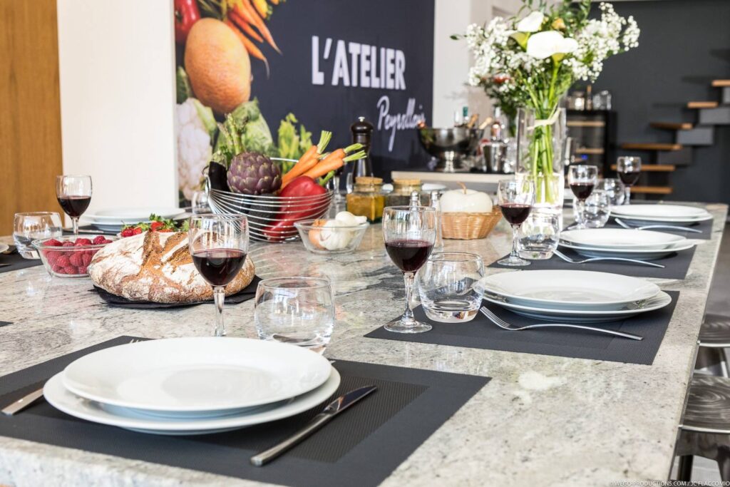 L’Atelier Peyrollais se situe dans la zone artisanale la Guérite à Peyrolles-en-Provence. Ce local a été remis à neuf et possède tout l’équipement professionnel nécessaire aux cours de cuisine. Une cuisine de professionnelle qui offre, également, de belles prestations de décorations. Ici, tous les matériaux choisis ont été achetés auprès d’artisans locaux. Et ça, Le Lab’ valide à 100%.