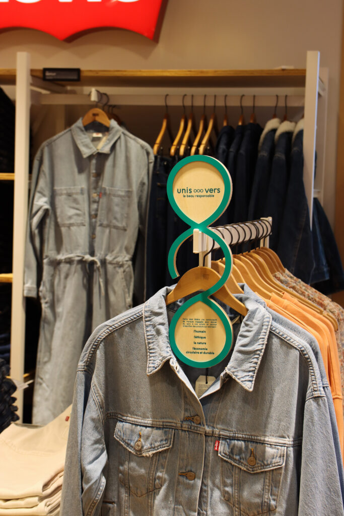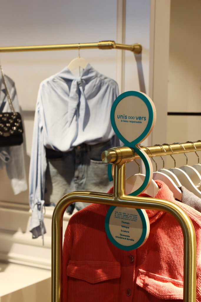 Vous pourrez les repérer grâce à une signalétique spécifique installée sur son corner (voir photos ci-dessous). Parmi elles, vous trouverez: Levi’s, Maje, Yuj, Panier des Sens, See by Chloé (marque la mieux noté), Esprit, Veja… Et tous les rayons sont concernés. Alors un conseil: ouvrez l’oeil !