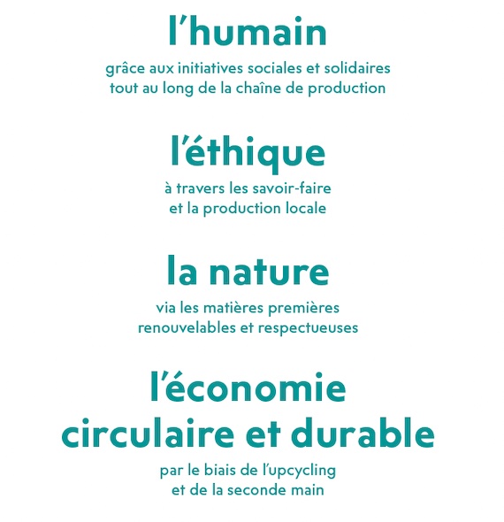 Ce label est structuré autour des 4 grands axes fondateurs de cette démarche : L’humain, l’éthique, la nature et l’économie circulaire. Au total, ce sont 9 thématiques, allant du sourcing durable à la logistique responsable, en passant par la promotion de l’économie inclusive, circulaire et l’innovation, qui composent ce label.