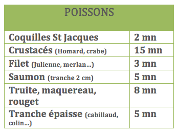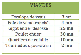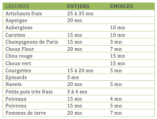 Tableaux indicatif des temps de cuisson au Vitaliseur