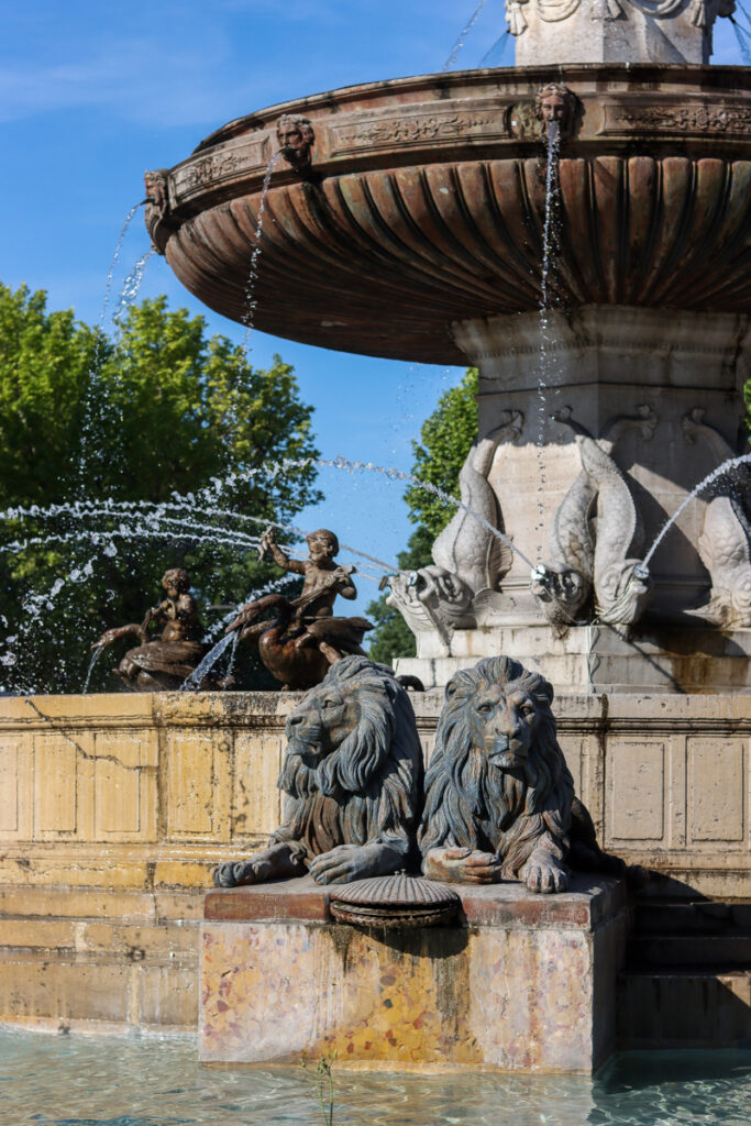 Au XIXe siècle, le conseil de la ville d’Aix-en-Provence décide d’embellir la Place de la Rotonde avec la création de la Fontaine de la Rotonde qui symbolise la ville au centre de son plus important carrefour, sa richesse et le génie de la ville. Avec ses 12 mètres de haut et ses 32 mètres de large, c’est la fontaine la plus célèbre de la ville, puisqu’elle fait face au Cours Mirabeau. Elle est tout simplement magnifique à regarder !