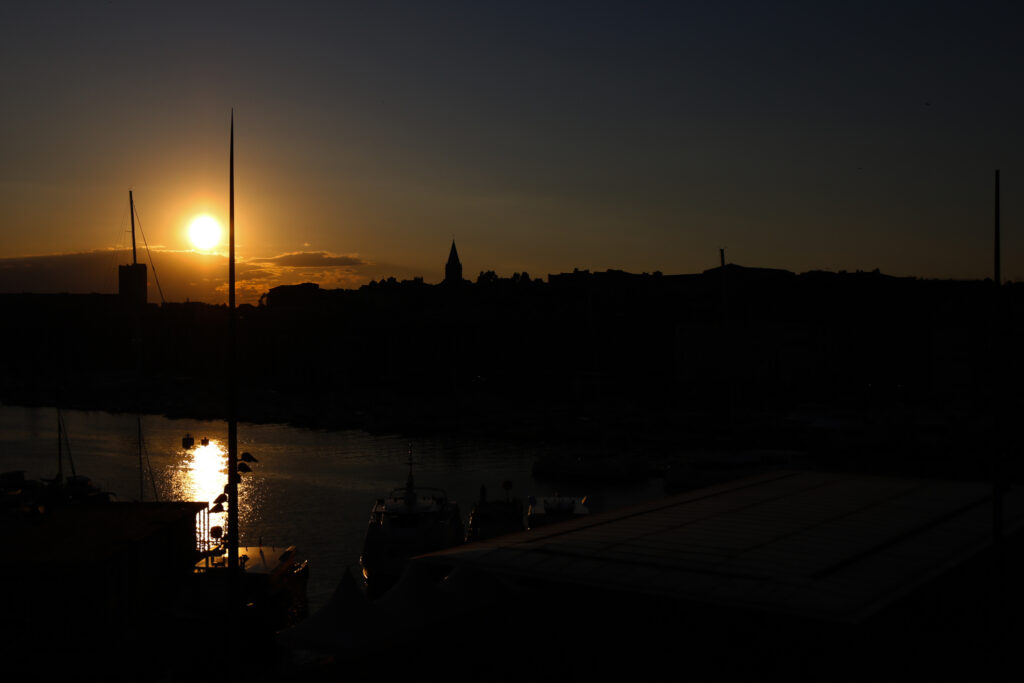 Situé sur le Vieux-Port, nous avons même eu la chance d’avoir une chambre avec vue sur l’ombrière. L’occasion rêvée d’admirer le coucher de soleil depuis notre fenêtre. Un moment suspendu.